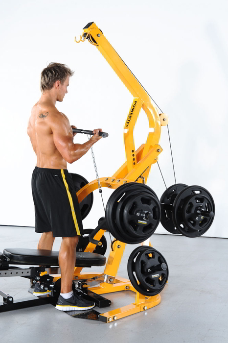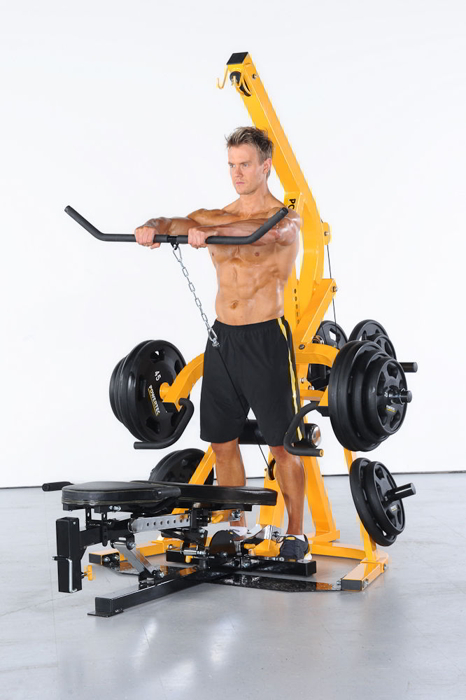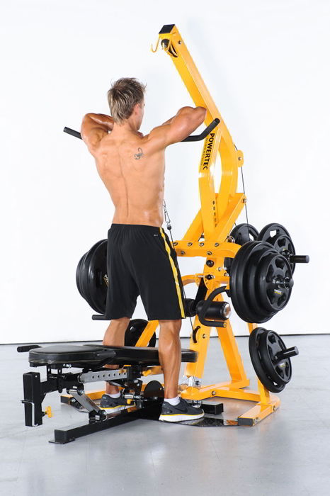Olympian’s presenta l’attrezzo polifunzionale Powertec Workbench Levergym, impiegabile per svolgere ben sedici esercizi per la forza, cui sicurezza ed efficacia sono assicurati da movimenti molto precisi. Questa stazione polivalente dalle dimensioni contenute e ideale anche per il personal training, può essere impiegata per eseguire il rematore piegati in avanti, le distensione per i tricipiti e per le spalle, il curl delle braccia, lo squat, le trazione alla lat machine, il crunch addominale, il rematore al pulley e l’apertura per i pettorali a un braccio e molto altro ancora.