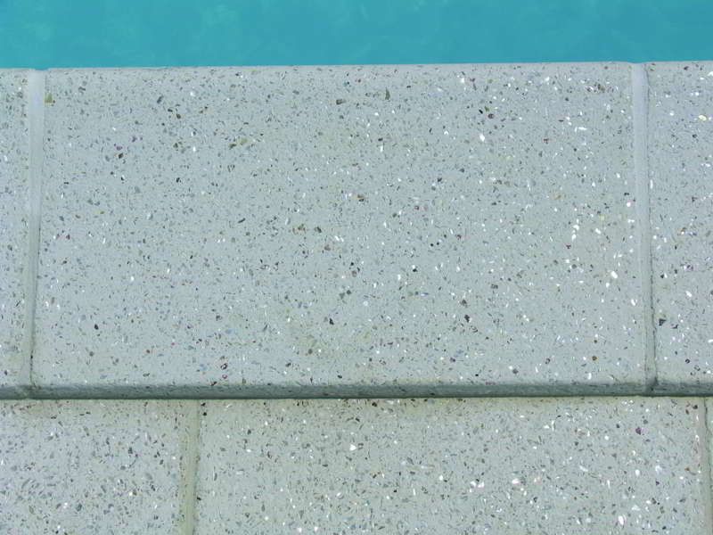 Bordo per piscina "Madreperla" creato con inserti di madreperla, ricavati direttamente da conchiglie provenienti da isole tropicali, che si distinguono chiaramente sulla sua superficie. Quando vengono colpiti dai raggi del sole, questi frammenti brillano e propagano bagliori di luce in ogni direzione, trasformando la piscina in un vero gioiello.