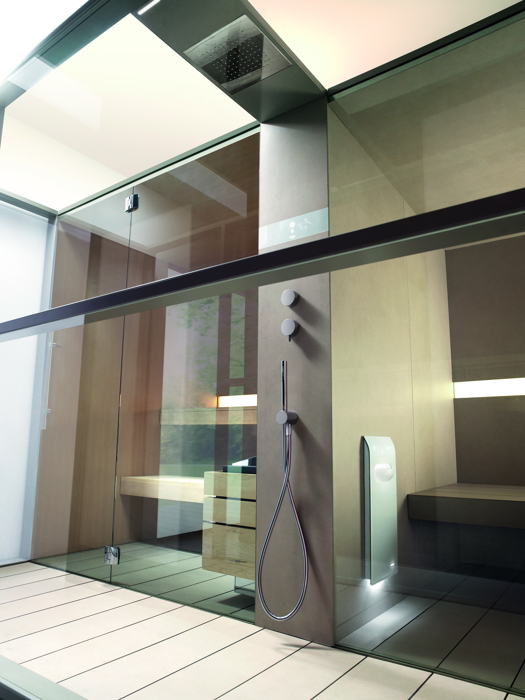 Effegibi presenta Logica Twin, una cabina multifunzione compatta composta da sauna finlandese e bagno turco. I due elementi si differenziano nella tecnologia e nei materiali utilizzati: egno di Hemlock canadese per la sauna e grès laminato per l’hammam. Disegnata da Talocci Design