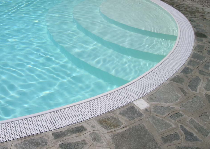 Il sistema brevettato Sfioro-top di Solaris Piscine permette di realizzare il canale di sfioro perimetrale prefabbricato di raccolta dell'acqua di tracimazione seguendo perfettamente la sagoma della piscina. Sfioro-top è un sistema industrializzato che permette di ridurre considerevolmente i tempi di realizzazione in cantiere, risparmiando sui tempi e i costi di installazione. Inoltre, in caso di assestamenti accidentali, permette di correggere il livello di sfioro anche a piscina finita, senza dover demolire nulla (fino a 1 cm)