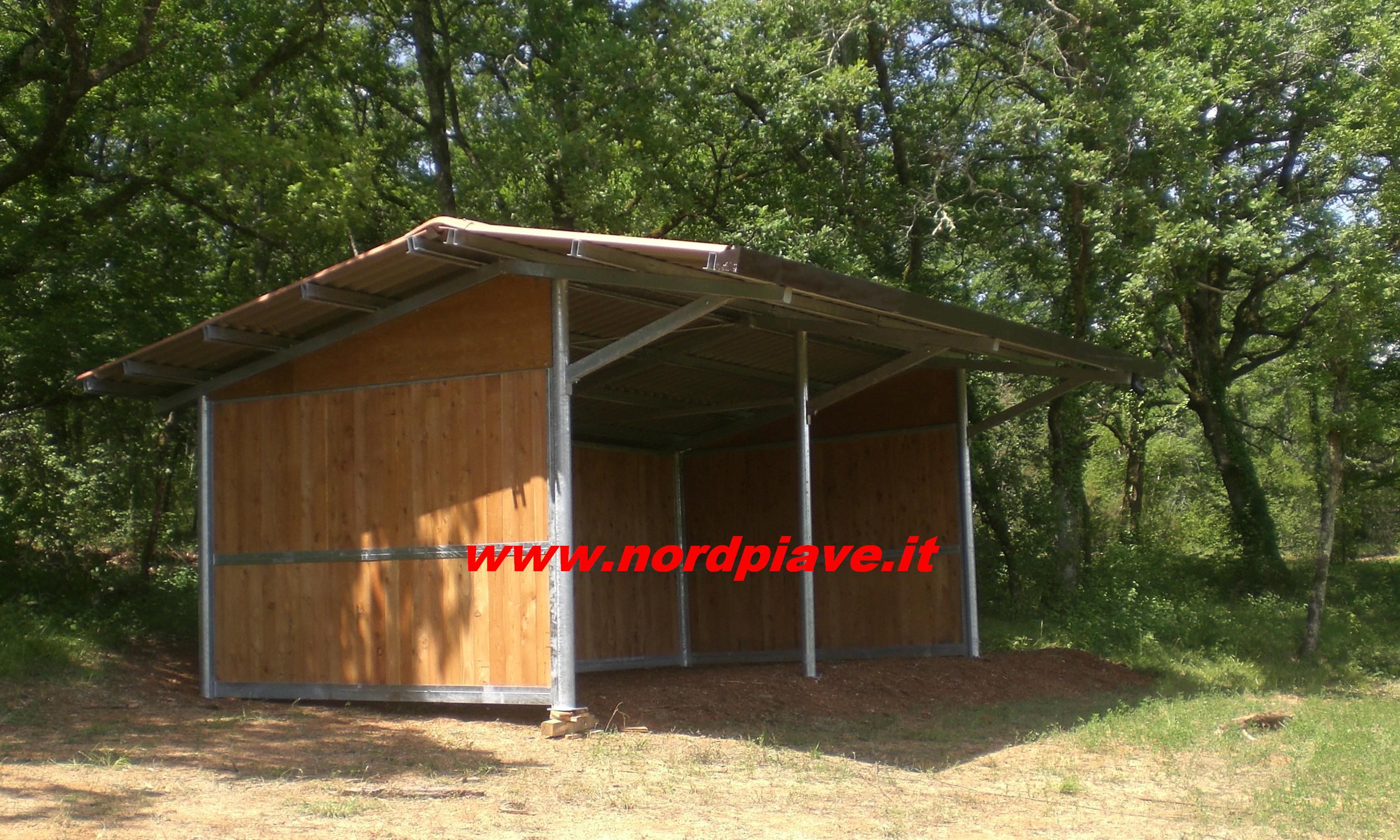 Capannina per paddock usata fabbrica Nord Piave per 2-3 cavalli dimensioni cm 600x450 copertura in ondulina a sbalzo struttura in ferro zincato a caldo e tavole di larice.
