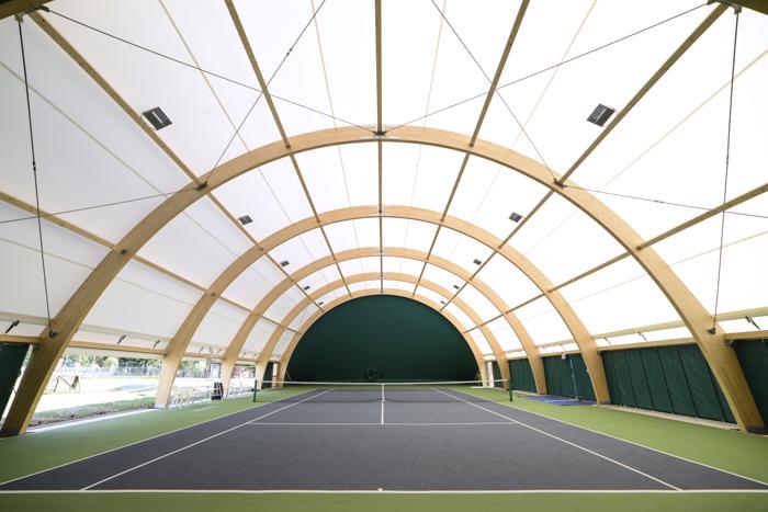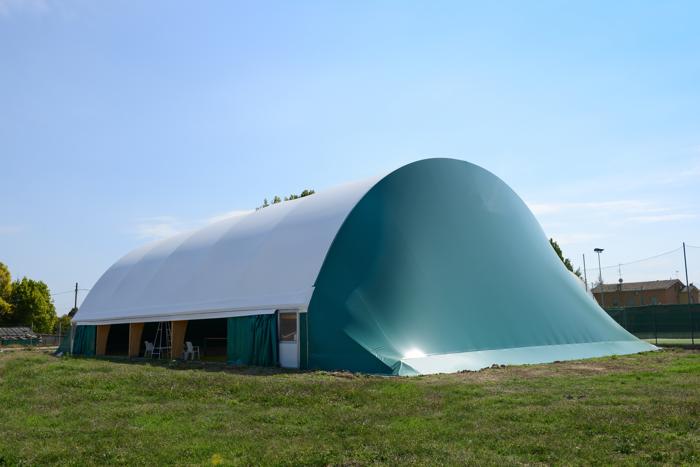 Copertura per campo da tennis realizzata dall'azienda Isicover, su progetto dell’ing. Lorenzo Mazza e dell’arch. Andrea Zanetti, presso il Centro Sportivo di Via XXI Aprile 1945 a Sant’Agata Bolognese.