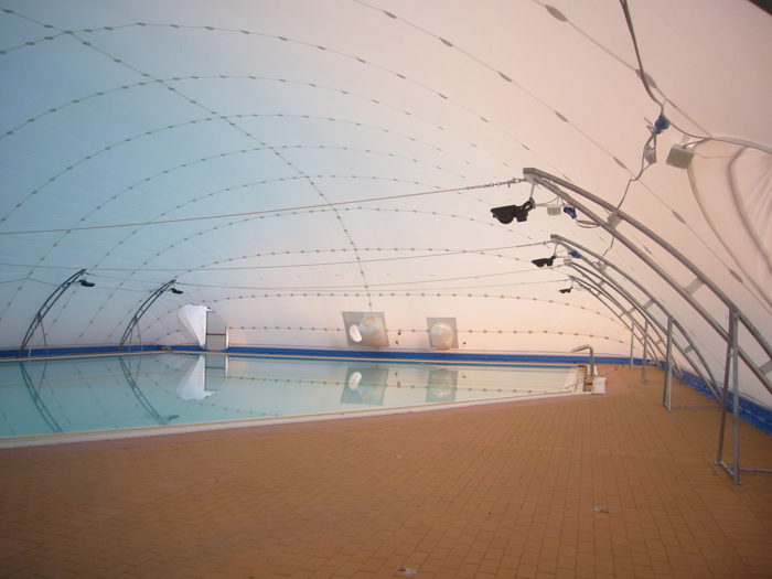 Descrizione: Coperture tessili per impianti sportivi e piscine. Strutture in legno lamellare, acciaio zincato, pressostatiche e geodetiche.
