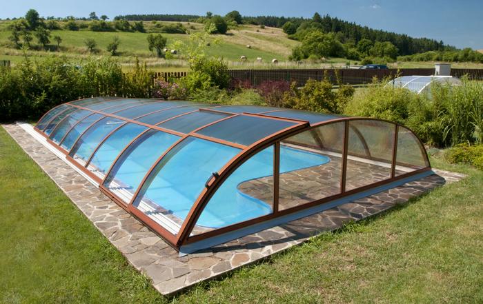 Distribuito in Italia da Euraqua, il modello Dallas è una copertura telescopica di media-altezza altamente personalizzabile, con profilati di alluminio in molteplici colorazioni, rotaie guida prolungabili, altezza della copertura variabile, con tetto o pareti laterali trasparenti e rinforzi aggiuntivi per zone ad alta intensità nevosa.