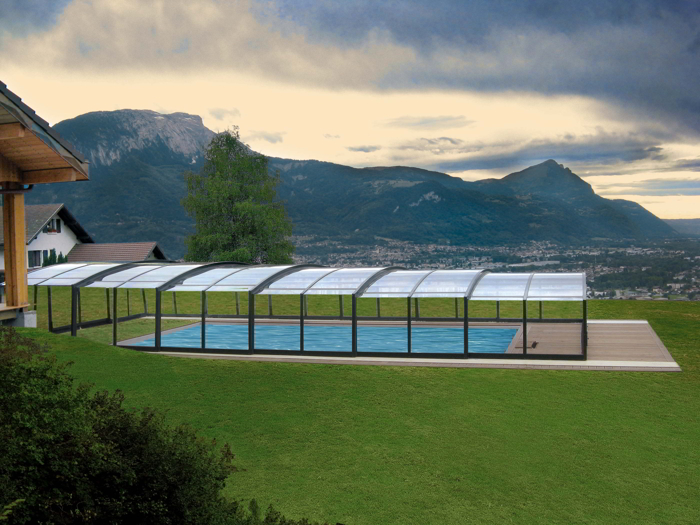 Aquanova, membro della più grande associazione internazionale di produttori e distributori di coperture telescopiche per piscine e SPA (Inter Pool Cover Team, IPC), presenta il modello Vision, che offre un'altezza in piedi fino ai 2 m, la quale permette di camminare tranquillamente all'interno senza particolari limitazioni.