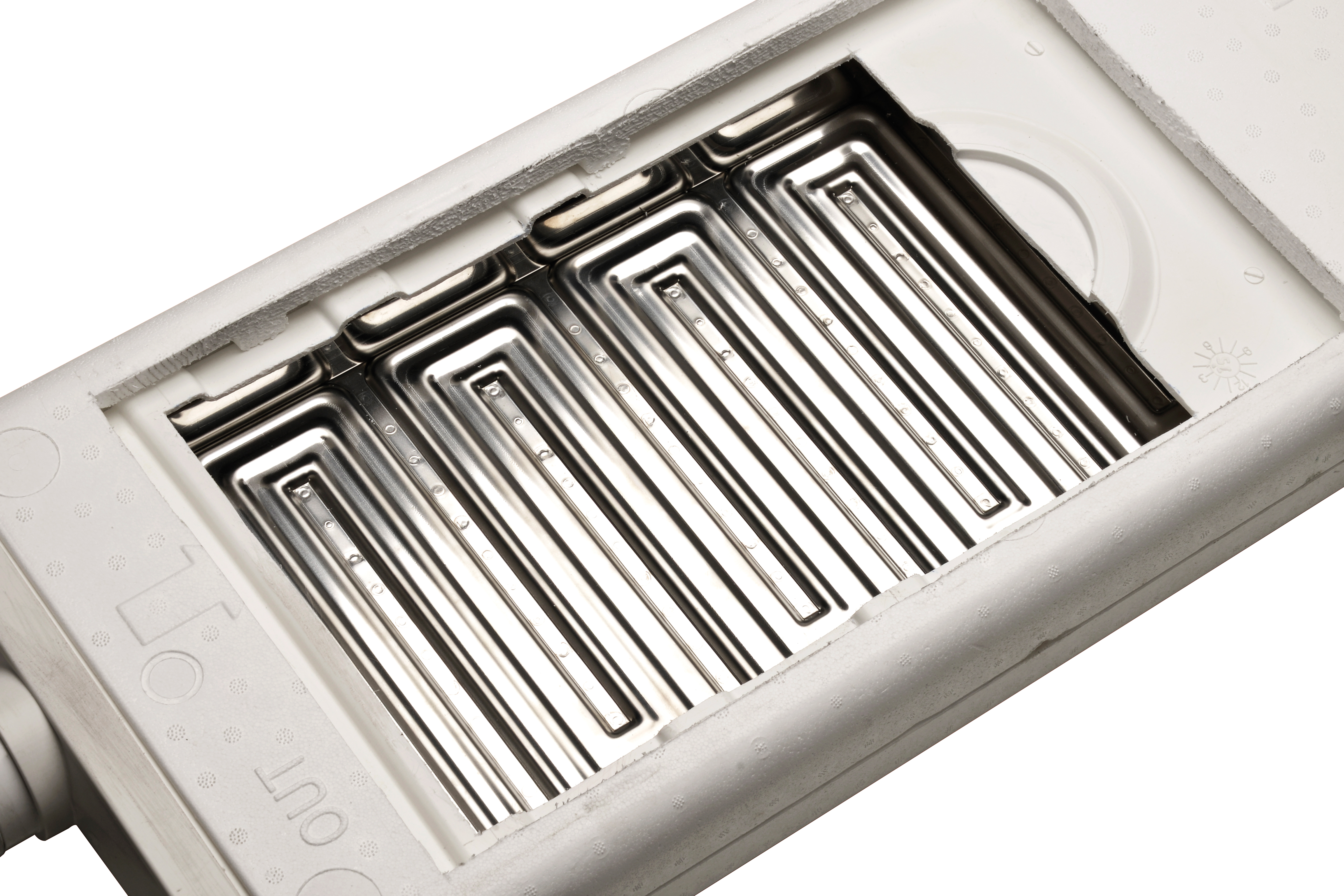 Con Ecoshower, l’acqua di scarico scorre sopra una serpentina stampata costituita da una due lamiere appositamente sagomate e saldate tra loro.