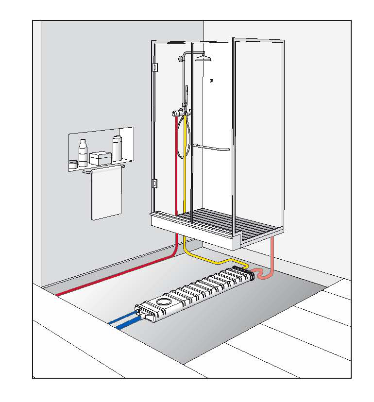 Ecoshower è il recuperatore di calore per acque reflue che riutilizza una notevole quantità di calore altrimenti dispersa in ambiente, attraverso lo scambio di calore tra l’acqua di scarico ed acqua di alimentazione dei generatori termici o direttamente del miscelatore finale.