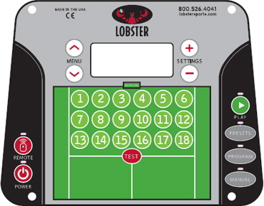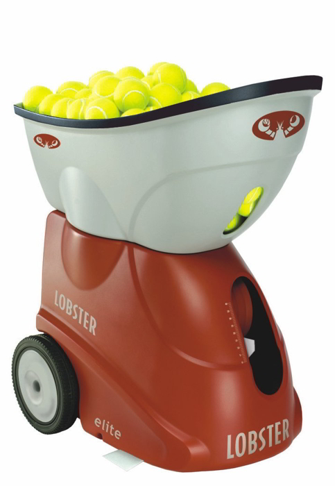 Macchina lanciapalle Lobster, modello Elite 5 Grand Slam, proposta da Ago Sport. È stata progettata e realizzata per essere facilmente trasportata e utilizzata in tutte le condizioni ambientali. L’alimentazione a batteria offre un’autonomia di gioco da 4 a 8 ore, con serbatoio in grado di contenere 150 palle. Completa di telecomando a 15 funzioni, la macchina permette un’oscillazione orizzontale e verticale programmabile in automatico, per lanci larghi, medi e stretti, con lancio casuale a tutto campo. Inoltre, i tre programmi di allenamento preimpostati, offrono la possibilità di programmare fino a 6 lanci in posizioni differenti.