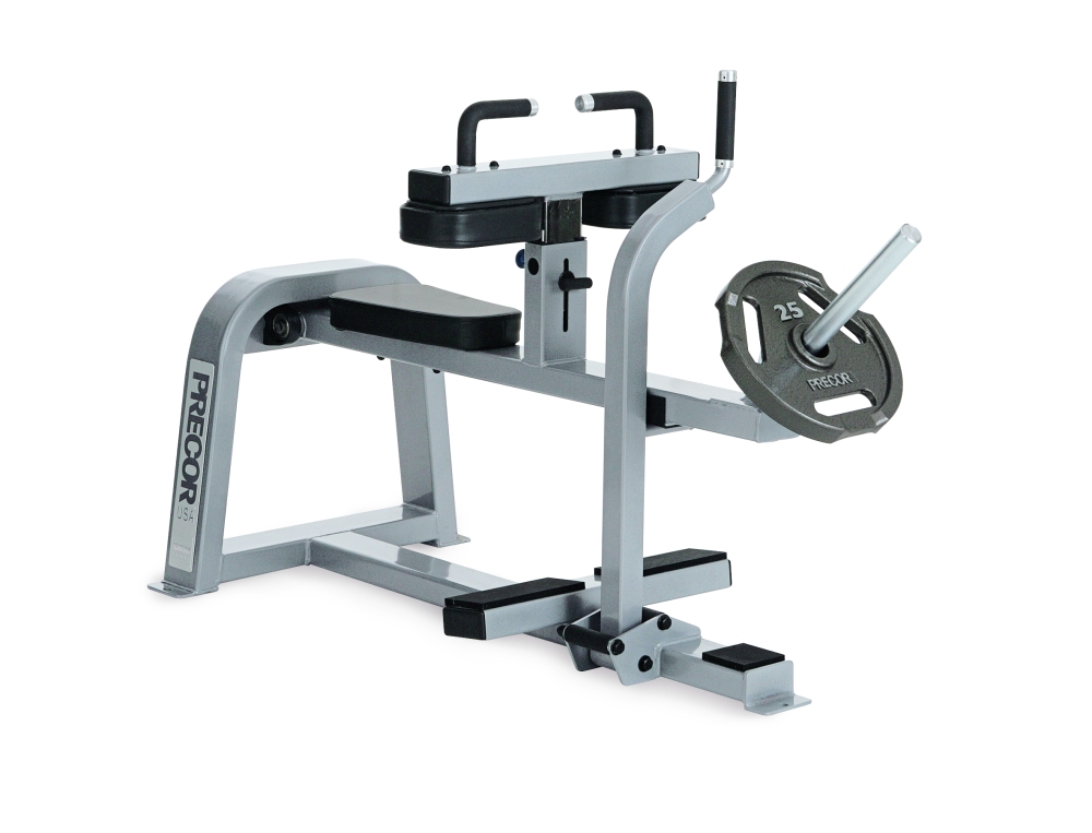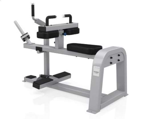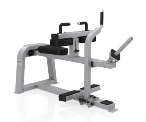 Seated Calf, attrezzo isotonico per un allenamento a più livelli capace di stimolare i principali gruppi muscolari dotato di pesi e panca.