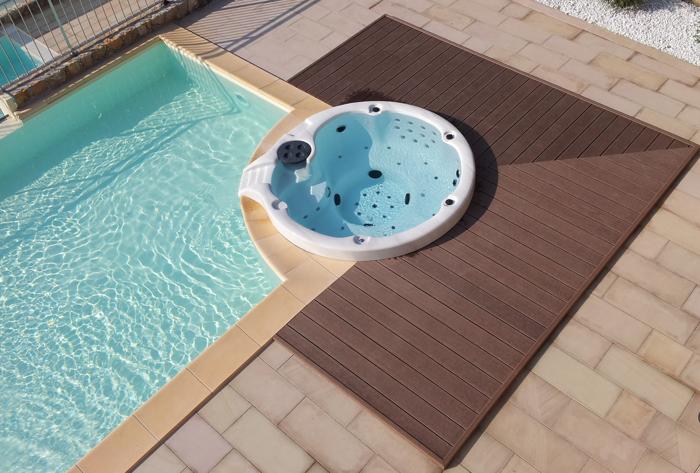 Le versioni disponibili della vasca sono una per idromassaggio e l’altra con impianto a ricircolo. Le differenze tra le due non sono enormi: la prima è dotata di pompa idromassaggio e blower, mentre la seconda oltre alla pompa idromassaggio e al blower, dispone anche di pompa a ricircoli, riscaldatore, filtro e quadro comando.