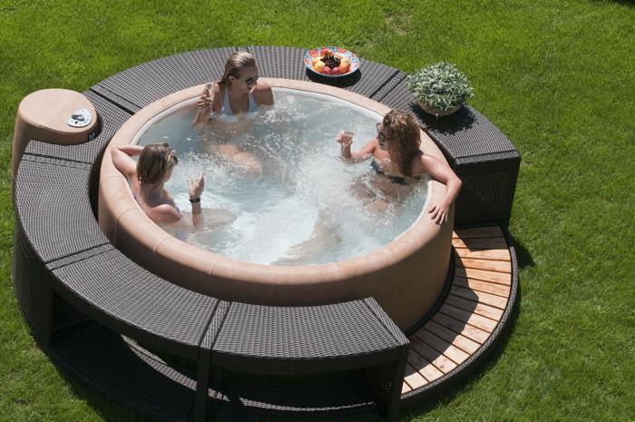 Softub, disponibile in 6 colori diversi, è una minipiscina realizzata da una struttura interna in schiuma solida PolyBond, un materiale espanso leggerissimo, ad alto potere isolante.