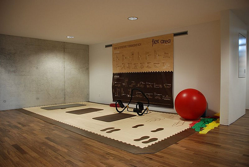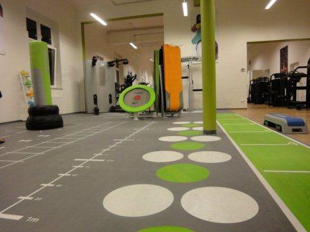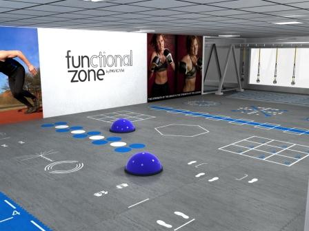 Un concetto ideato da Pavigym per differenziare visualmente le diverse zone di una area comune in una palestra.