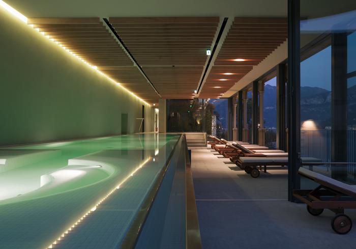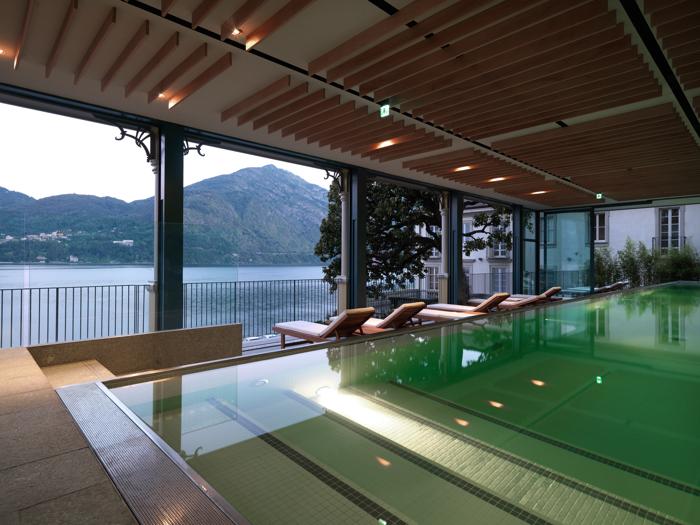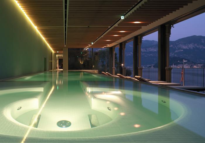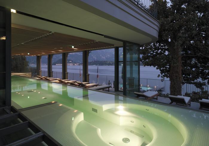 Al primo piano del Grand Hotel Tremezzo Palace, trova collocazione "TSPA", un centro benessere il cui punto culminante è rappresentato da una piscina di 15 x 2,75 m, coperta e riscaldata, con cinque diversi tipi di idromassaggio, in parte interni, in parte esterni, e nuoto contro-corrente. La piscina è realizzata su una terrazza coperta che permette una vista mozzafiato sul Lago di Como. Per questo motivo, è stata dotata di sfioro a cascata su due lati, così da creare un effetto “infinity” e congiungere idealmente l’acqua della piscina con quella del lago.