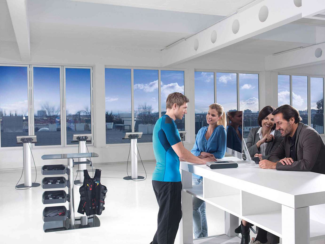 Miha bodytec unisce i giusti ingredienti per un sistema rivoluzionario: le tecnologie di più recente concezione in combinazione con un utilizzo ideale e la massima convenienza. L'unità di controllo delle dimensioni di un laptop, essendo portatile e installabile su un supporto.