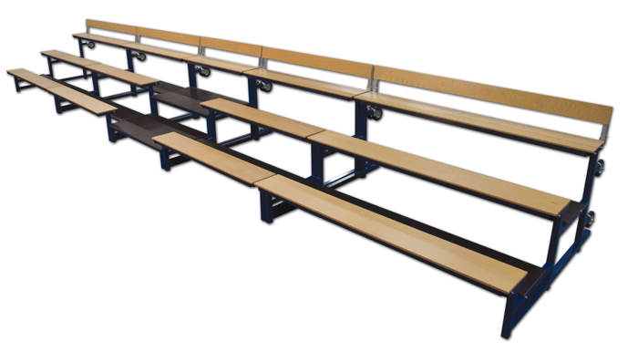 Sport System presenta la nuova tribuna componibile, codice S07671, dalle dimensioni contenute, ribaltabile e mobile su ruote per un veloce ed agevole stoccaggio, estremamente versatile ed adattabile alle più diverse e disparate esigenze, anche esulanti dall’ambiente prettamente sportivo. La distribuzione dei moduli non è in alcun modo vincolata ma funzionale alle diverse esigenze dell’utilizzatore e gli stessi potrebbero anche essere utilizzati separatamente a formare due o più diverse tribune indipendenti. Ogni singolo modulo può essere quindi ribaltato ed agevolmente trasportato sulle 4 ruote girevoli; i moduli ribaltati possono essere quindi inseriti uno all’interno dell’altro, grazie alla loro diversa larghezza ed alla particolare struttura, in modo da ridurre il volume totale di stoccaggio ad appena cm 280x150x190h. E per uso outdoor è già pronta la soluzione con struttura in acciaio zincato e piani di seduta e camminata in legno trattato per uso esterno.