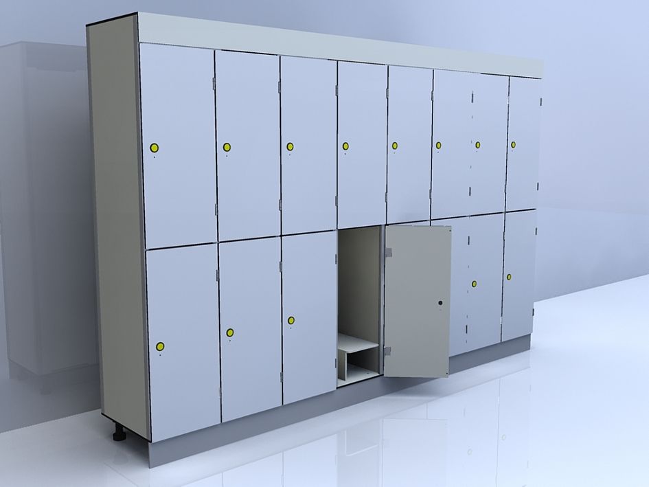 La versione in laminato ad alta pressione è disponibile sia su misura sia nelle varie configurazioni standard, ovvero a “L” a due posti, a un posto e ad anta intera a 4, 6 e 9 posti.