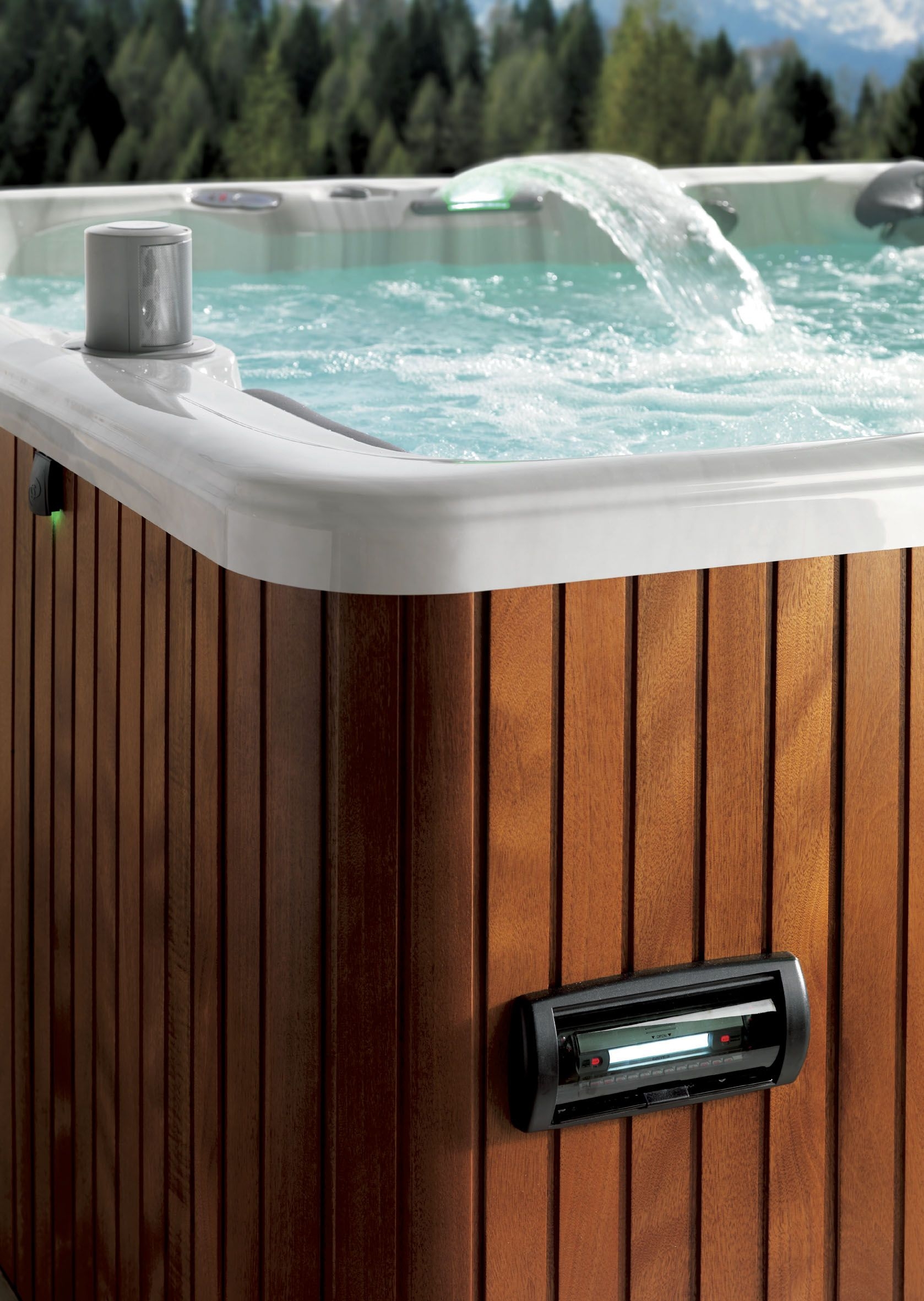 Particolare silenziosità di funzionamento, effetto cromoterapia (interna ed esterna) che garantisce una sequenza di 6 diversi colori (blu, acqua, verde, ambra, rosso e Magenta), cascata a lama d’acqua, massaggio cervicale dei neck jets, esclusivo sistema Hi-Fi e Cd Player per ascoltare musica.