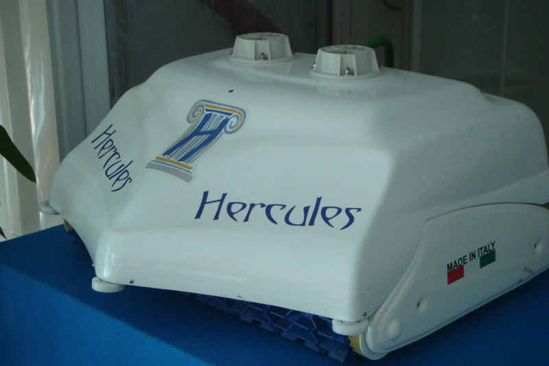 Pulitore Elettromeccanico Hercules senza elettronica per la pulizia del solo fondo piano di piscine olimpioniche di dimensioni massime fino a 450mq (fino a 30 metri). La trasmissione integrale a 4 rulli indipendenti assicura omnidirezionalità, velocità differenziata e impeccabile pulizia. Grazie alla totale assenza di componenti elettronici non necessita di particolari manutenzioni. Conforme alle norme di sicurezza CE.