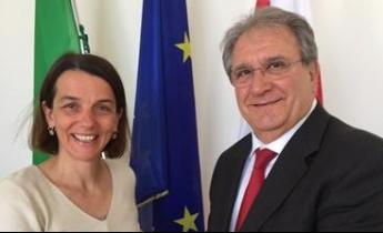 Nella foto: Chiara Bisconti e Riccardo Fraccari firmano il protocollo d'intesa
